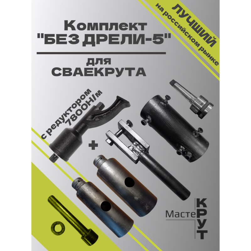 Комплект деталей "БЕЗ ДРЕЛИ-5" с редуктором 7800Н/м предназначен для сборки СВАЕКРУТА - нового на рынке инструмента для погружения металлических свай в грунт. Данный комплект содержит все детали, изготовление которых производится вручную, а именно: 1. 1 головка-насадка толщиной 5мм для свай 57/89, 1 головка-насадка толщиной 5мм для свай 76/108, 1 палец для фиксации головок, 1 переходник КМ-3 (подходит для дрели 2кВт), 1 корпус, 1 рычаг и 1 усиленный редуктор 7800Н/м. Чтобы получить готовый СВАЕКРУТ, Вам необходимо докупить только силовую технику, а именно дрель электрическую мощностью 2кВт (до 108 сваи, рекомендуем REBIR 2кВт, как самую лучшую на рынке). Покупая такой комплект Вы экономите около 4000р, по сравнению со стоимостью всех деталей по отдельности! А еще больше Вы экономите, если покупаете дрель напрямую в магазине. Без нашего посредничества в приобретении дрели Вы экономите не только деньги, но и время, а также гарантийные случаи решаете напрямую с продавцом (пока решается вопрос с предыдущей дрелью, покупаете новую и работаете дальше, и не придется возвращать весь комплект сваекрута нам только из-за дрели). Вам экономия средств, времени и нервных клеток. Нет сорванных сроков, заказчики довольны, Вы в плюсе со всех сторон!
