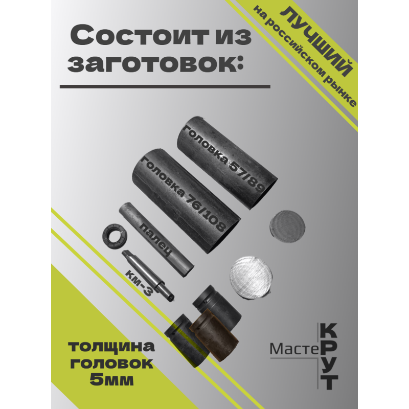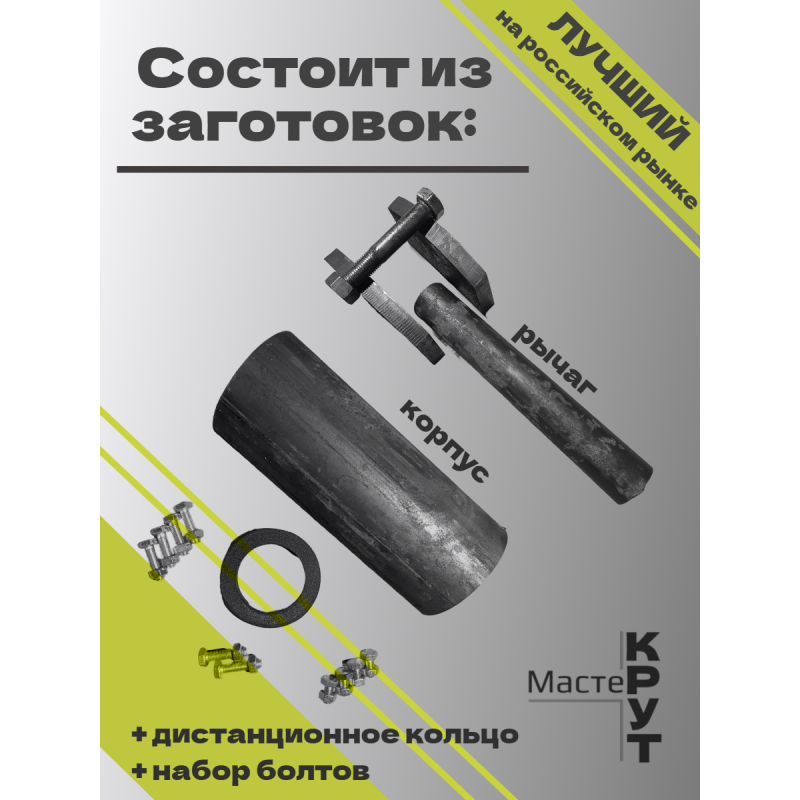 Комплект деталей для изготовления СВАЕКРУТА "Я - МАСТЕР" предназначен для тех пользователей, кто уверен в себе и точно знает, что сможет сделать лучше. Набор содержит все необходимые детали для изготовления всех комплектующих: головок-насадок на 57/89 и 76/108 сваи толщиной 5мм, фиксирующего пальца 30мм, корпуса, рычага-усилителя и переходника КМ-3. В комплекте идет краткая инструкция по изготовлению деталей. Если Вы сделаете все правильно, то в итоге получите наш комплект "ЖЕЛЕЗО - 5" с большой выгодой!